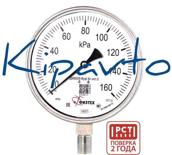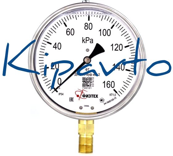 Манометр коррозионностойкий Физтех ДМ8008-ВУф Кс исп 2 0-160 кПа кт.1,0 d.160 IP65 M20_1,5 РШ SG, Силикон 4687205724656