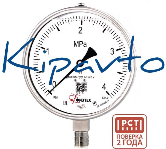 Коррозионностойкий манометр ФИЗТЕХ ДМ8008-ВУф Кс исп 2 0-4 МПа кт.1,0 d.160 IP65 M20_1,5 РШ SG, Силикон относится к категории манометров и предназначен для контроля давления. В обозначении модели указаны основные параметры исполнения, а рабочий диапазон шкалы составляет от 0 до 4 МПа.