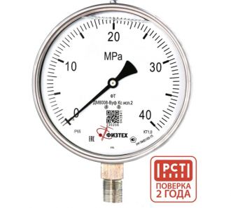 Манометр коррозионностойкий Физтех ДМ8008-ВУф Кс исп 2 0-40 МПа кт.1,0 d.160 IP65 M20_1,5 РШ SG, Силикон 4687205724809