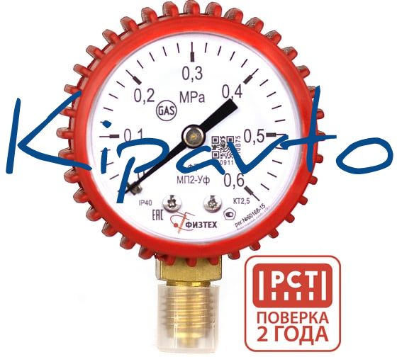 Манометр пропановый Физтех МП2-Уф 0-0,6 МПа кт.2,5 d.50 IP40 M12_1,5 РШ Газ (C3H8), кожух красный 4687207023047