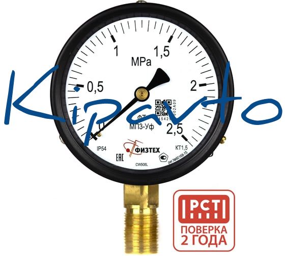 Манометр пылевлагозащищенный Физтех МП3-Уф 0-2,5 МПа кт.1,5 d.100 IP54 M20_1,5 РШ 4687205628503