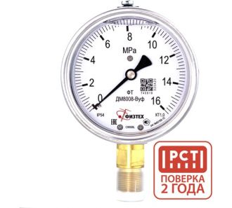 Манометр виброустойчивый ДМ8008-ВУф 0-16 МПа кт.1,0 d.100 IP54 G1/2 РШ, Глицерин Физтех 4687205640154