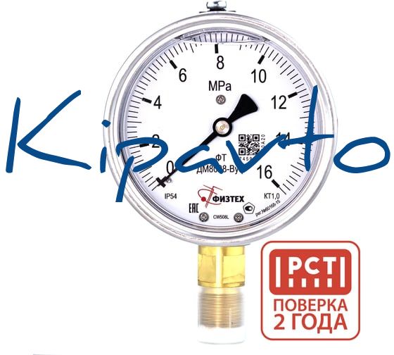 Манометр виброустойчивый ФИЗТЕХ ДМ8008-ВУф — прибор категории манометров для контроля давления с диапазоном измерения 0–16 МПа. В наименовании указаны исполнение кт.1,0, диаметр 100 мм, класс защиты IP54, присоединение M20x1,5, а также обозначения РШ и Силикон. Бренд — ФИЗТЕХ.