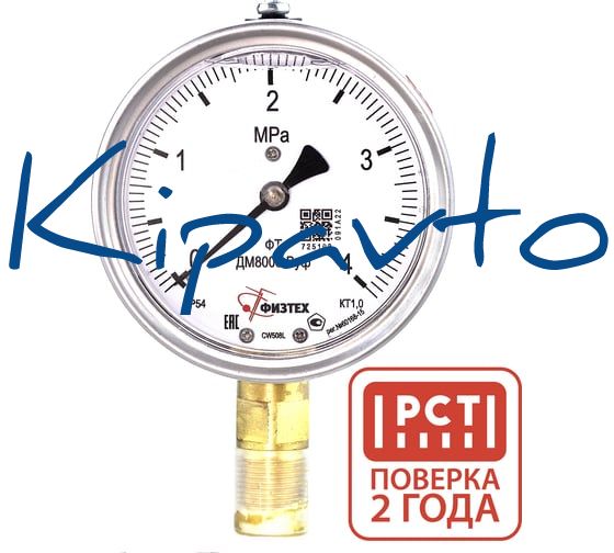 Манометр виброустойчивый Физтех ДМ8008-ВУф 0-4 МПа кт.1,0 d.100 IP54 G1/2 РШ, Без/запол 4687205640291