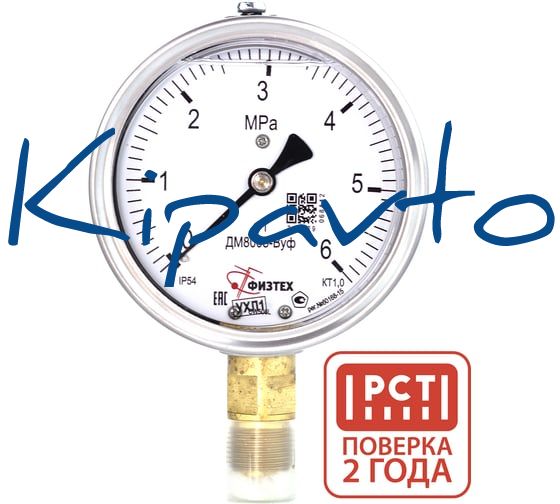 Манометр виброустойчивый Физтех ДМ8008-ВУф 0-6 МПа кт.1,0 d.100 IP54 M20x1,5 РШ, Силикон 4687205455024