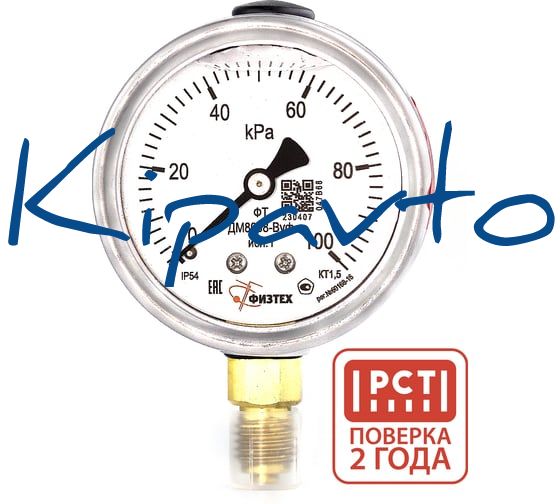 Манометр виброустойчивый Физтех ДМ8008-ВУф исп 1 0-100 кПа кт.1,5 d.63 IP54 M12x1,5 РШ, Глицерин 4687205450074