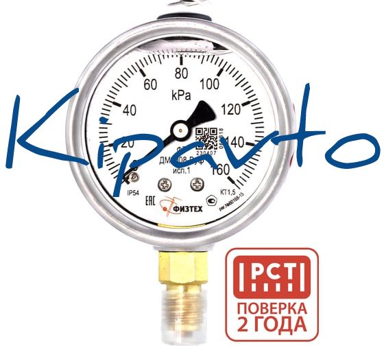 Манометр виброустойчивый Физтех ДМ8008-ВУф исп 1 0-160 кПа кт.1,5 d.63 IP54 M12x1,5 РШ, Глицерин 4687205450067