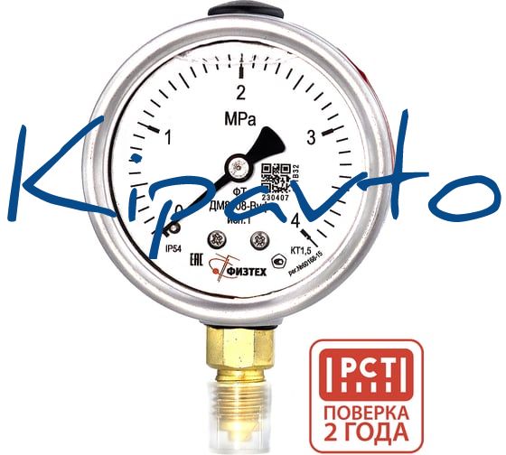 Манометр виброустойчивый Физтех ДМ8008-ВУф исп 1 0-4 МПа кт.1,5 d.63 IP54 M12x1,5 РШ, Глицерин 4687205449993