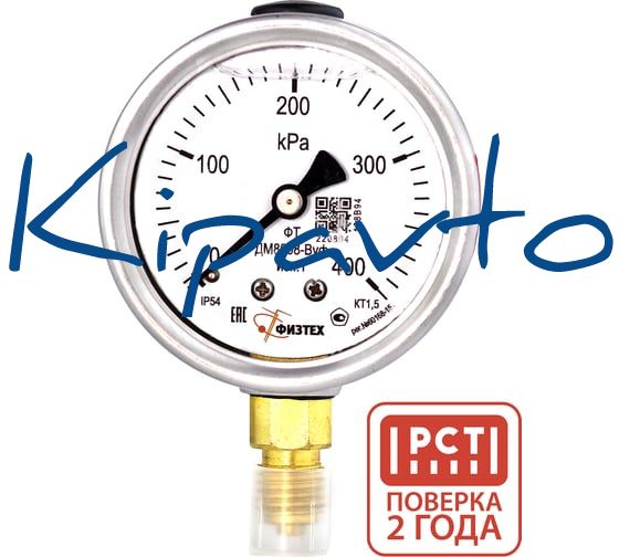 Манометр виброустойчивый Физтех ДМ8008-ВУф исп 1 0-400 кПа кт.1,5 d.63 IP54 M12x1,5 РШ, Силикон 4687205454935