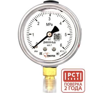 Манометр виброустойчивый Физтех ДМ8008-ВУф исп 1 0-6 МПа кт.1,5 d.63 IP54 M12x1,5 РШ, Силикон 4687205454874