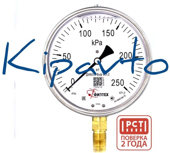Манометр виброустойчивый Физтех ДМ8008-ВУф исп 2 0-250 кПа кт.1,0 d.160 IP54 M20x1,5 РШ, Силикон 4687205455147