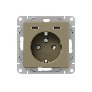 Механизм розетки с USB-C - 2шт 16А с заземлением со шторками шампань Эпика EKF