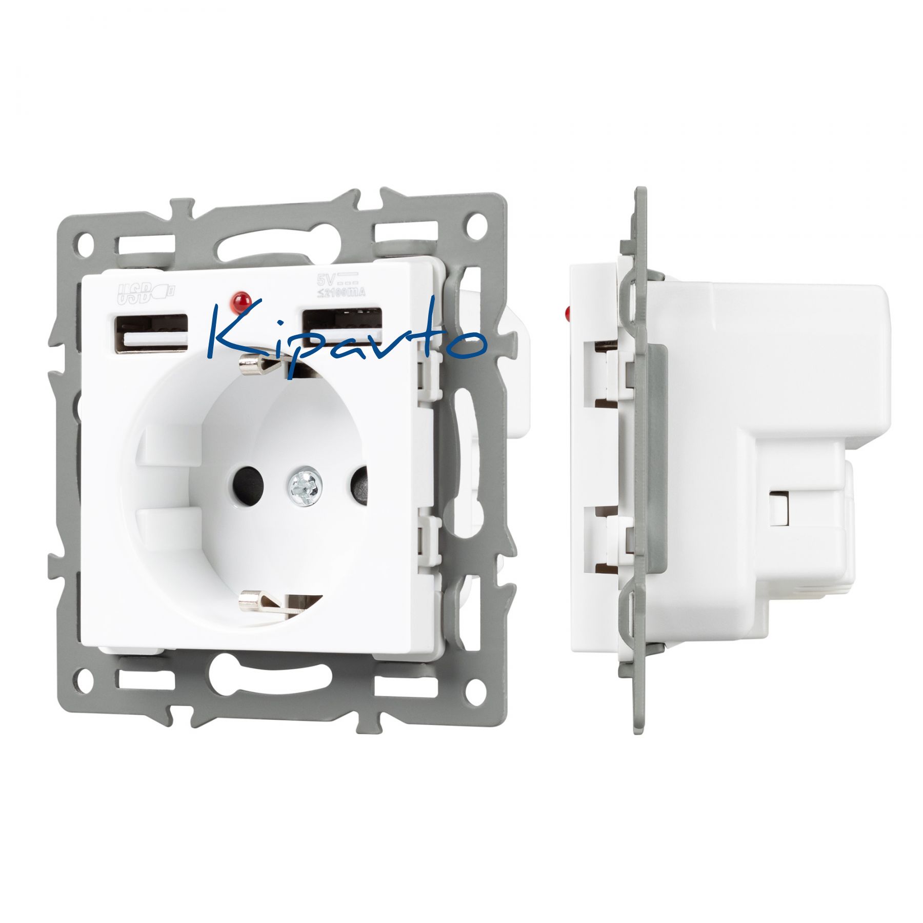 Механизм розетки с USB зарядкой SCT-MUAA-PL-WH 250V, 16A