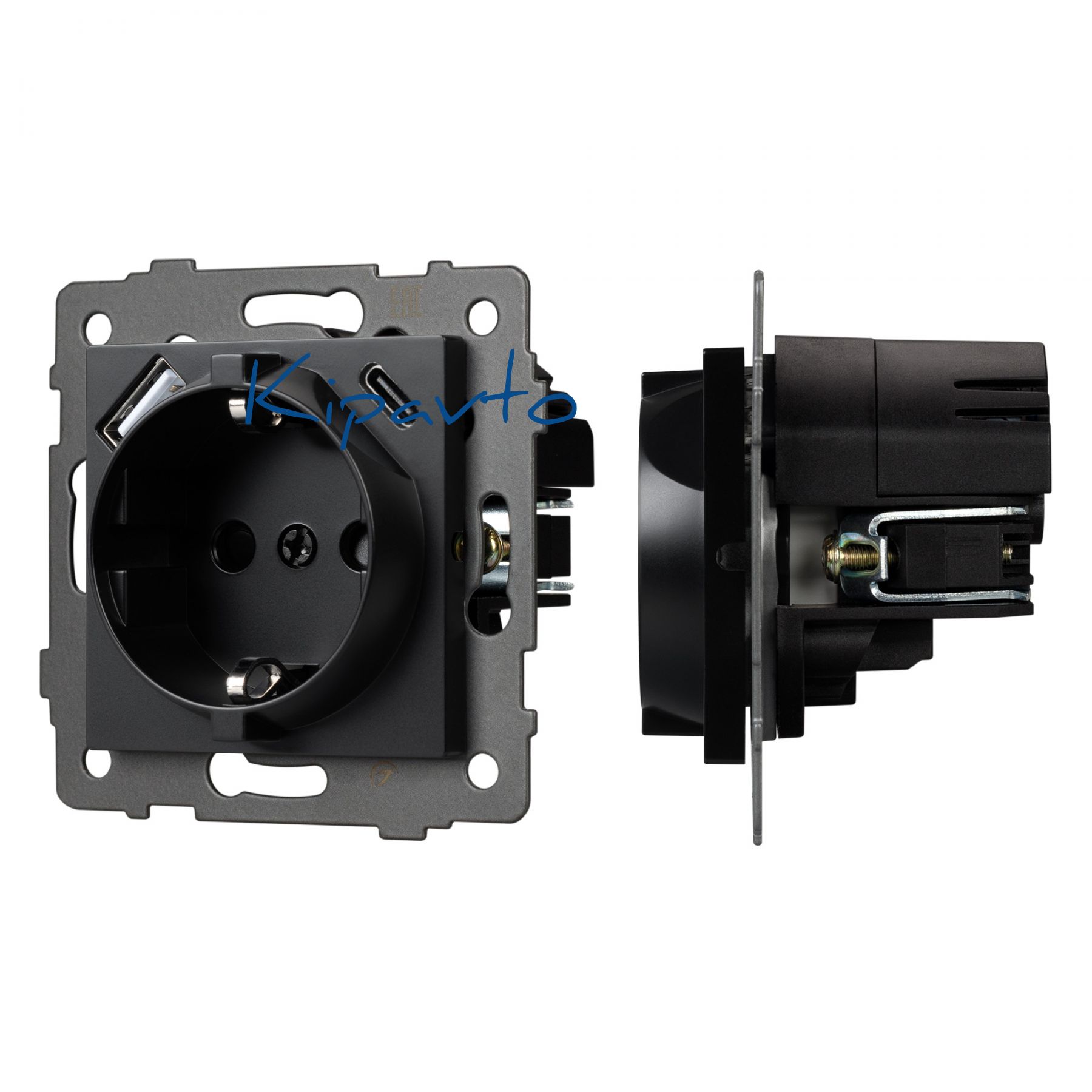 Механизм розетки с заземлением совместим с рамками серий OMALI/AKYRI/PERIO/XSILO. Скрытый тип монтажа позволяет гармонично встроить в интерьер любого современного дизайн-проекта. Видимая часть механизма выполнена из высококачественного пластика черного цвета. Контактная часть присоединяется при помощи винтовых зажимов, а усиленные распорные лапки надежно фиксируют механизм в установочном подрозетнике. Дополнительно встроены два зарядных порта USB Type A + Type C. Зарядный порт USB Type C с поддержкой протокола быстрой зарядки Quick Charge 3 (совместимо с протоколами Adaptive Fast Charging (Samsung), Huawei Super Charge, Power Delivery (Apple)).