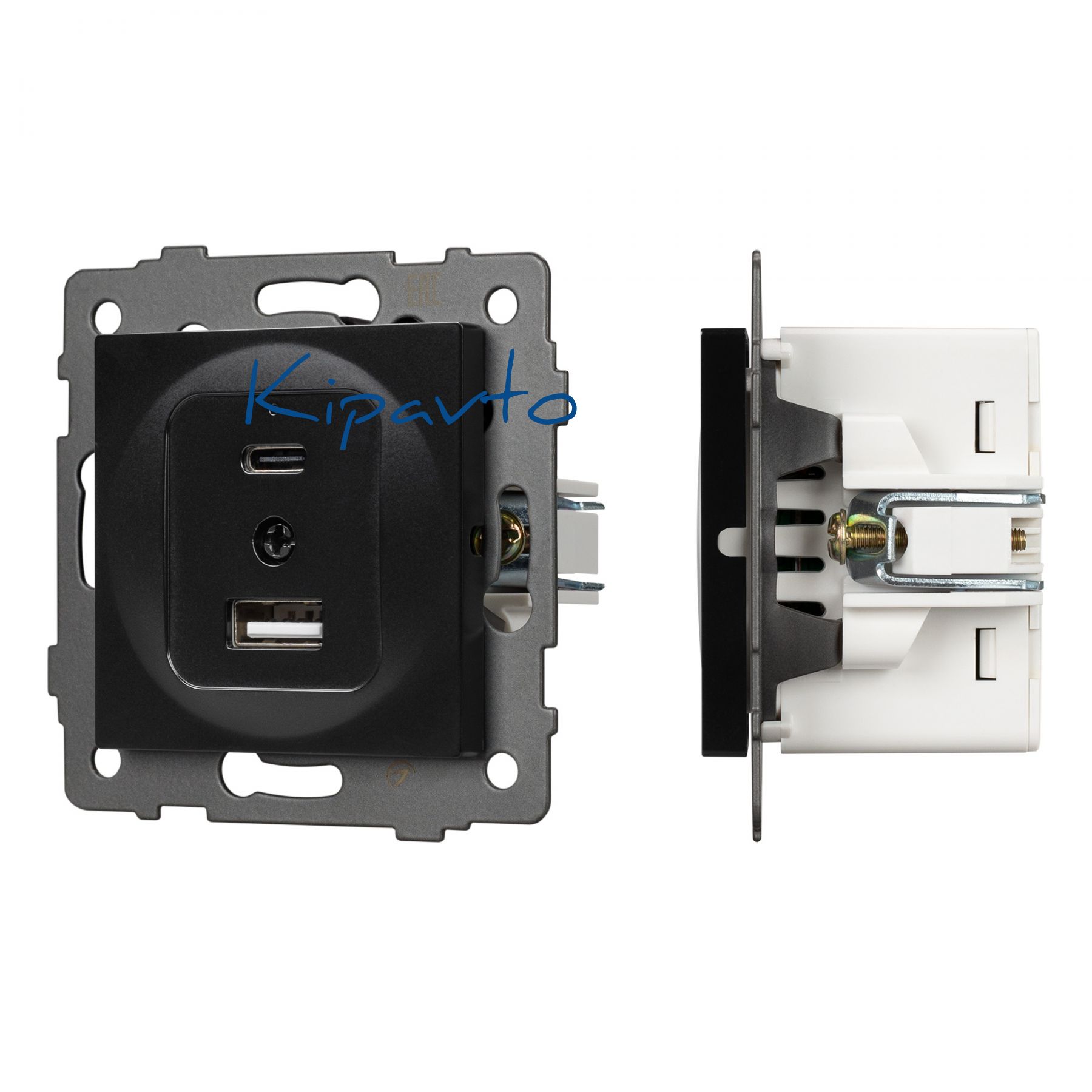 Механизм USB розетки SCT-MUAC-PL-BK-V 5V, 3A, QC4
