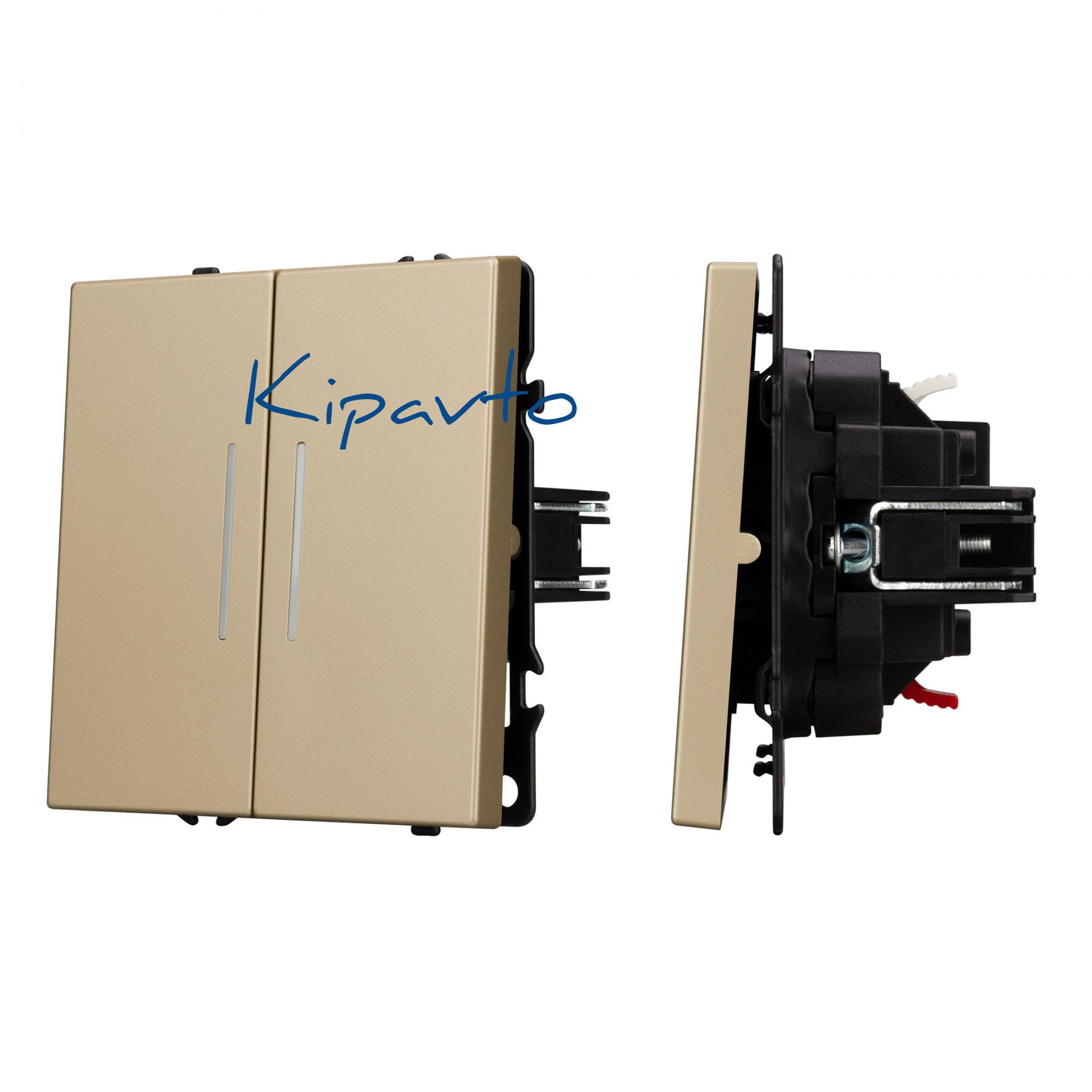 Механизм выключателя двухкавишный непроходной LED SWT-NOBE-MK02-SFPL-L-GD 230V, 10A, Золото светлое, 1 пост