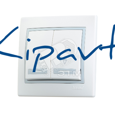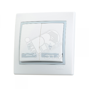 Мира Выключатель 2х клавишный белый с серой вставкой
