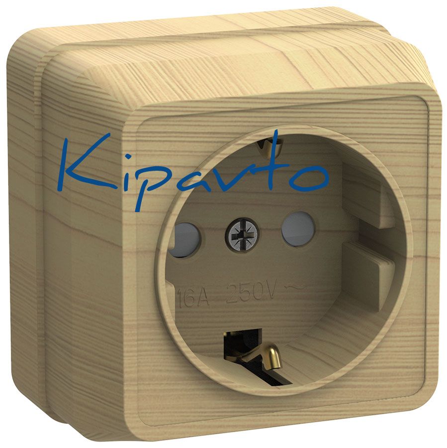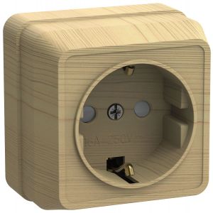 OKTAVA Розетка 1-местная с заземлением с защитными шторками для открытой установки 16А РСш20-3-ОС сосна GENERICA