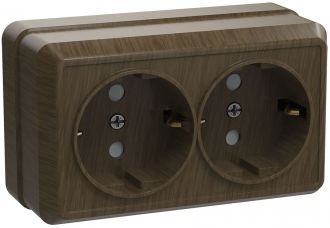 OKTAVA Розетка 2-местная с заземлением для открытой установки 16А РС22-3-ОД дуб GENERICA