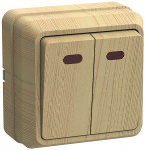OKTAVA Выключатель 2-клавишный с индикацией для открытой установки 10А ВС20-2-1-ОС сосна GENERICA