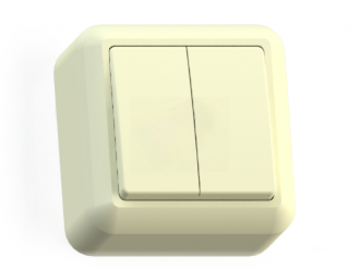 Выключатель открытой установки двухклавишный. Номинальный ток 10А. Видовые детали (корпуса, клавиши) выполнены из ABS пластика, позволяющего получить прочную, износостойкую и глянцевую поверхность. Основание механизмов розеток изготавливаются из армамида – негорючего, термостойкого, стеклонаполненного полиамида с классом негорючести ПВ-0 и стойкостью к воздействию нагретой проволокой 960C. Система менеджмента качества предприятия аттестована в соответствии с международным стандартом ISO 9001.