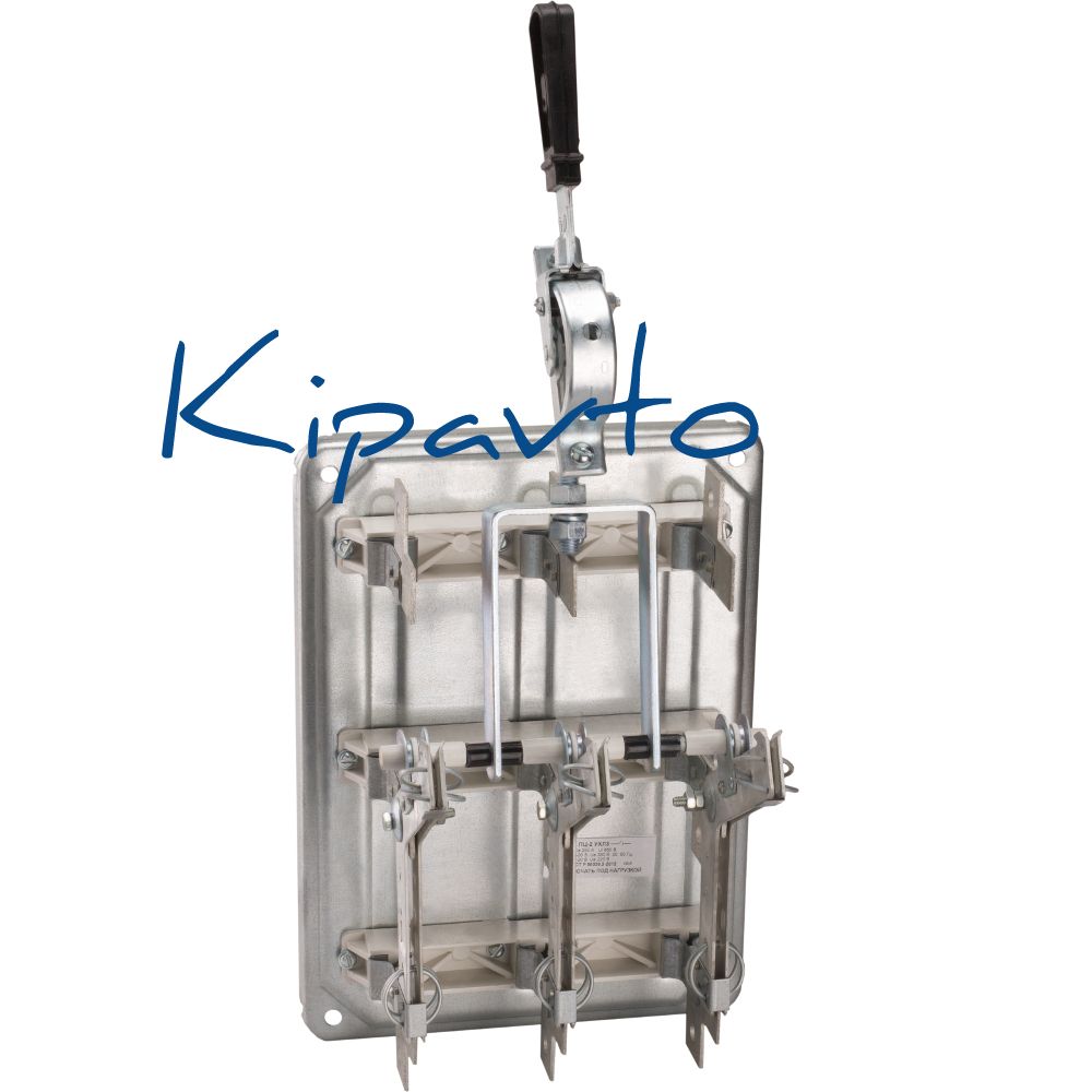 Выключатель-разъединитель 3 полюсный на номинальный ток 250 А, номинальный условный ток короткого замыкания Iq 20 (кА), где установлена центральная рукоятка, а максимальное сечение присоединяемых медных шин составляет 120 кв. мм.