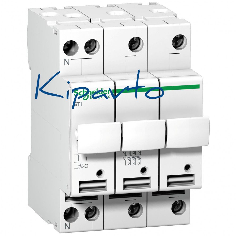 Разделитель предохранитель STI 3П+Н 10,3X38 400В. Комбинированные pазъединители-пpедохpанители STI обеспечивают защиту от перегрузок и коротких замыканий. Держатели плавких вставок обеспечивают видимый разрыв при эксплуатации электроустановки. Применяются на промышленных и административно-ко ммерческих объектах, где требуется высокая отключающая способность аппаратов защиты. Выполняют функции разъединительинителя, но не могут использоваться в качестве выключателя нагрузки.