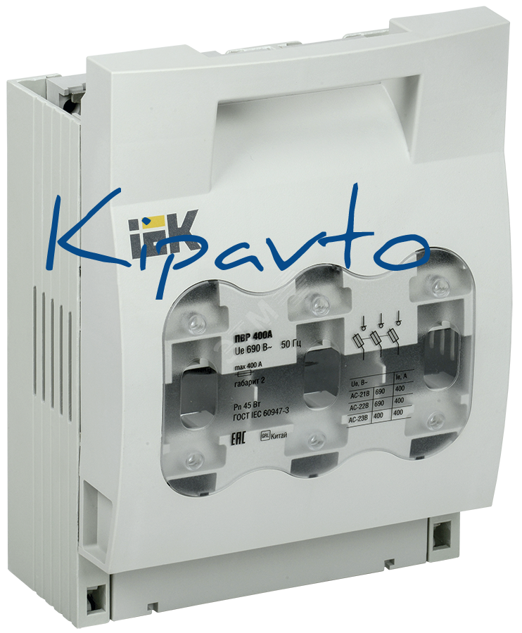 Предохранители-выключатели-разъединители (ПВР) предназначены для неавтоматической коммутации и защиты от сверхтока цепей переменного тока номинальным напряжением до 690 В и номинальной частоты 50 Гц. Используются для установки в низковольтные комплектные устройства. Преимущества - Компактная и прочная конструкция. Корпус, не поддерживающий горение. Возможность коммутации под нагрузкой, благодаря встроенным дугогасительным камерам. Возможность присоединения медных и алюминиевых проводников. Возможность установки дополнительного контакта, для контроля положения крышки. Съемная крышка, обеспечивающая легкий монтаж предохранителей.