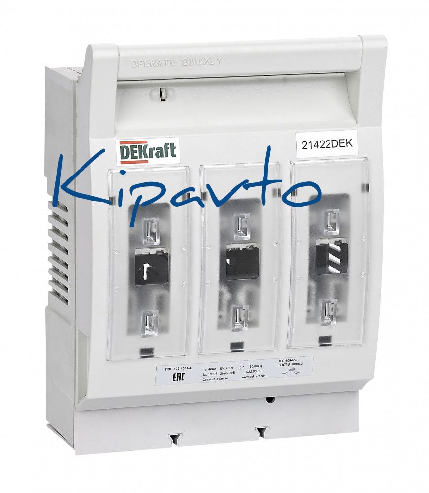 Предохранитель-выключатель-разъединитель горизонтальный (ПВР-102) предназначен для включения и отключения нагрузки с видимым разрывом в сетях трехфазного переменного тока до 400 А частотой 50/60 Гц и номинальным напряжением до 690 В. Трехфазное отключение, монтаж на монтажную плату. С дополнительным контактом в комплекте.