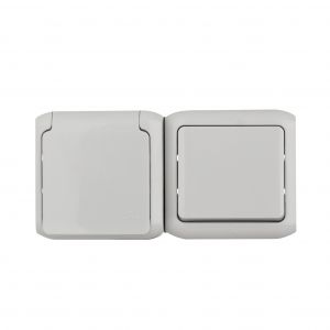 Quteo Блок: Выключатель + розетка с заземлением со шторками наружный серый IP44