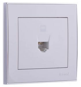 RAIN Розетка компьютерная белая с боковой вставкой хром