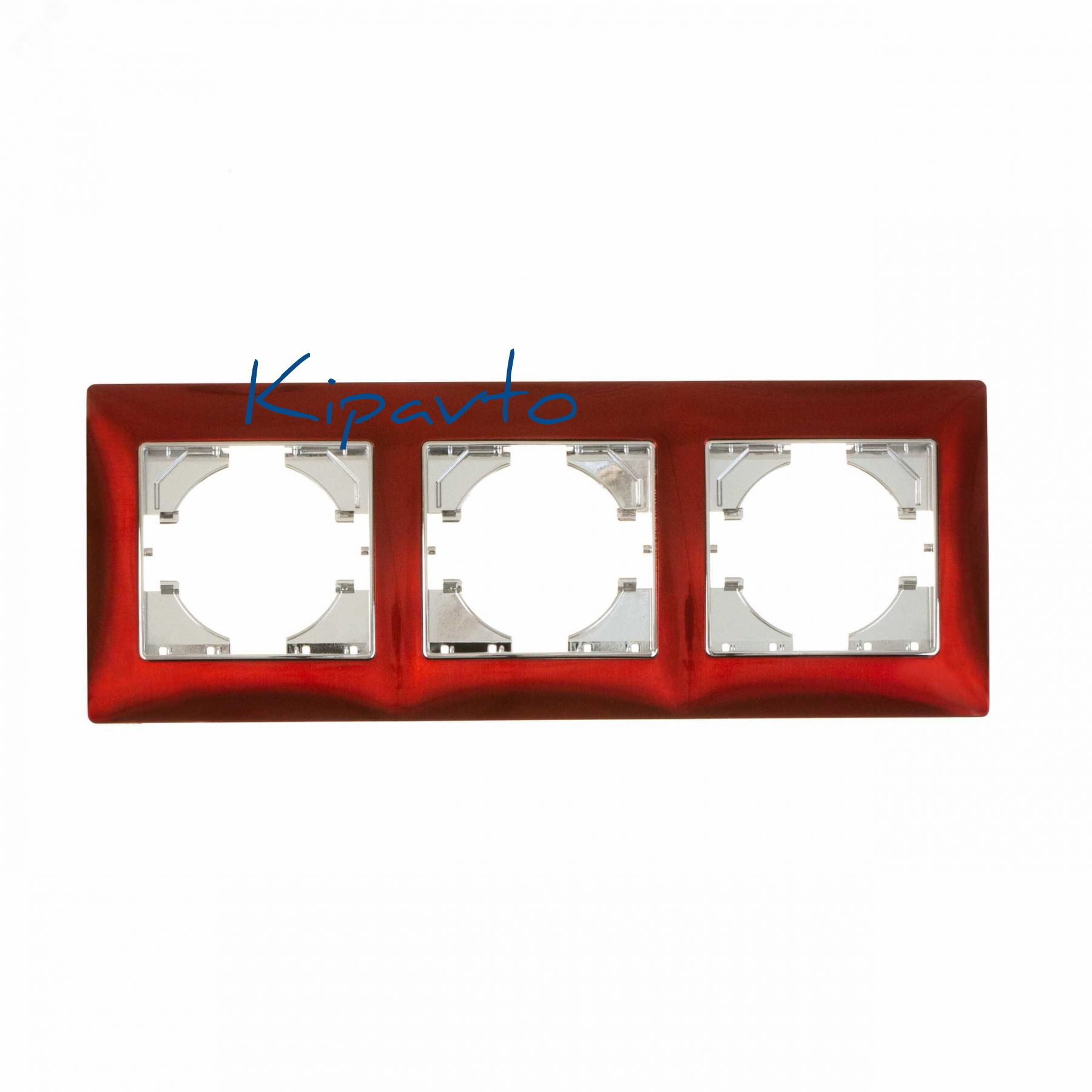 Рамка 3-местная Bravo цинк, тёмно-красный