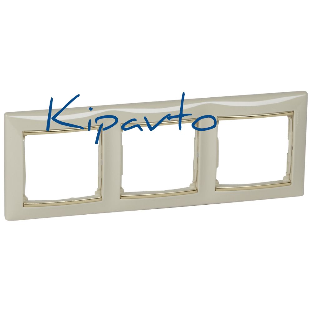 Рамка 3-местная слоновая кость (золотой штрих) VALENA