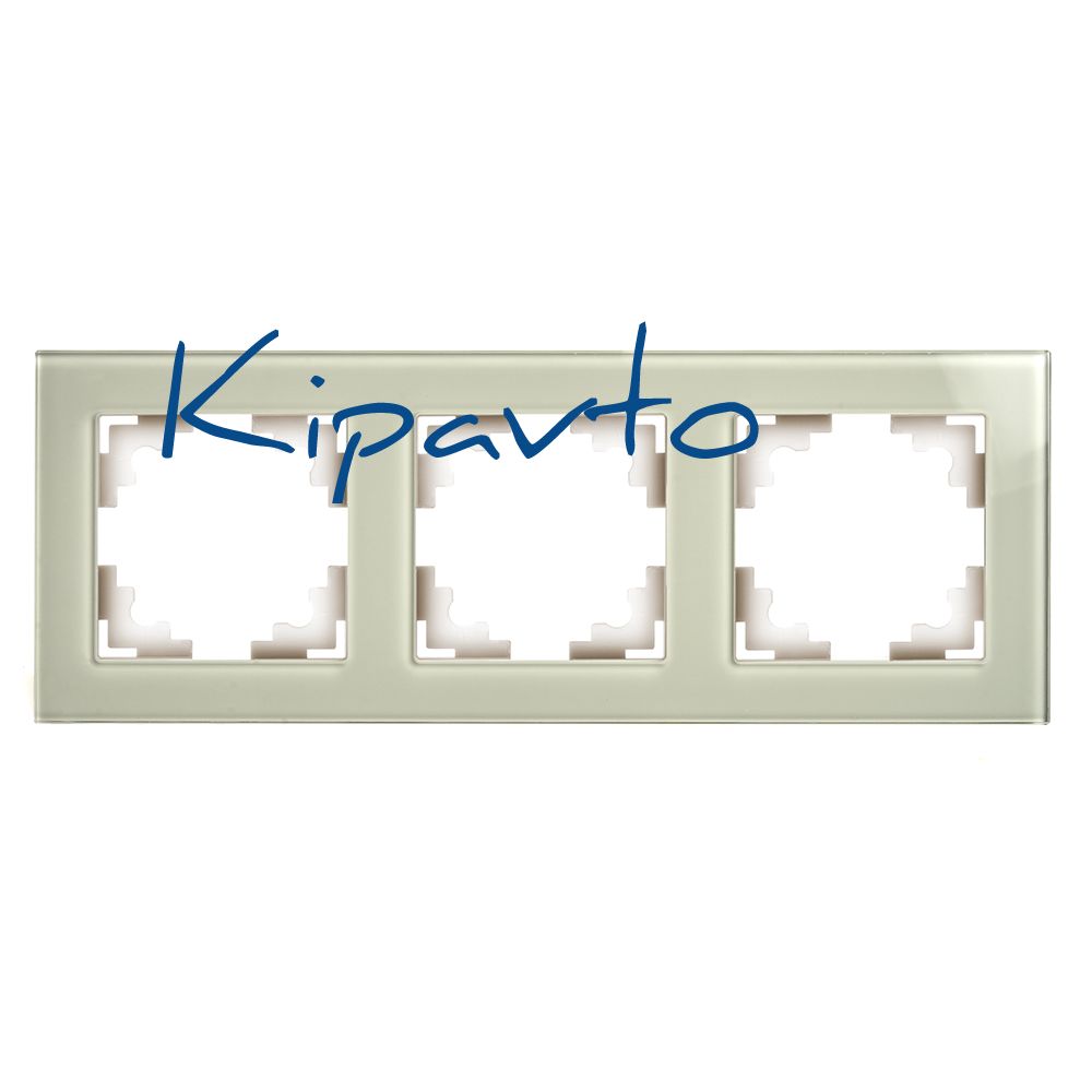 Рамка трехместная горизонтальная, стекло, Катрин, дымчатый Stekker