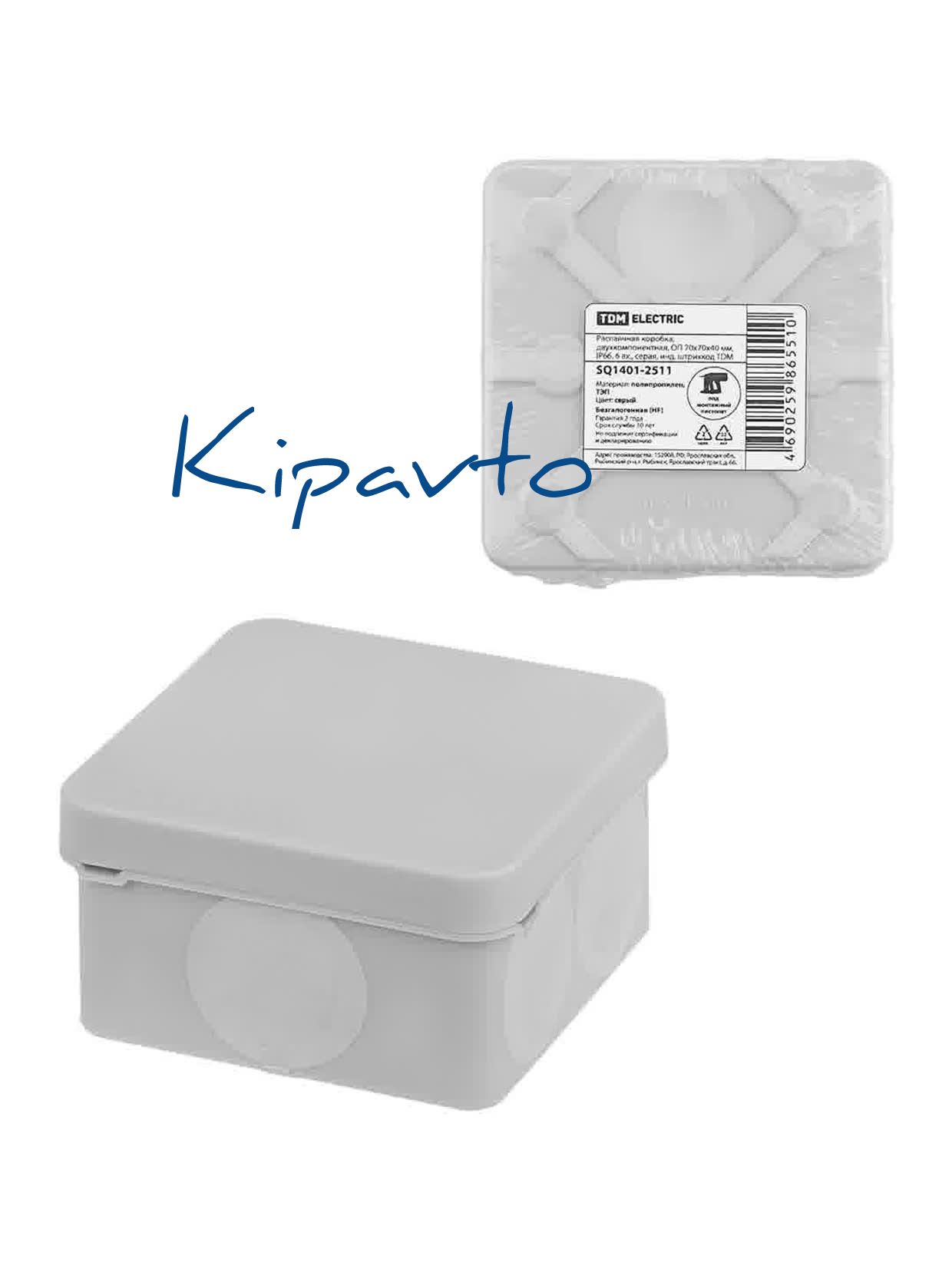 Распаячная коробка двухкомпонентная ОП 70х70х40 мм IP66 6 вх. серая инд. штрихкод TDM