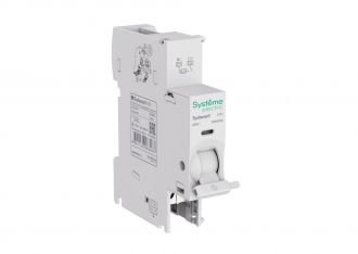 Расцепитель минимального напряжения (MN) S9. Вызывает автоматическое отключение соответствующего аппарата при понижении его входного напряжения (между 70 и 35 % Un). Предотвращает включение аппарата до восстановления его входного напряжения. Присоединяется к автоматическим выключателям, автоматическим дифференциальным выключателям, выключателям дифференциального тока и блокам дифференциального тока (монтаж на АВ) серии Systeme9, для реализации функции дистанционного отключения. Ширина устройства - 18мм. Устанавливается защёлкиванием (без использования инструмента) слева от соответствующего аппарата. Расцепители монтируются на устройство первыми, дополнительные контакты монтируются после них. Максимальное количество расцепителей для одного устройства - 2 штуки.