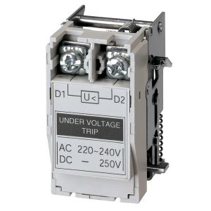 Расцепитель минимального напряжения размыкает автоматический выключатель, если значение линейного напряжения падает до 35-70% от номинального напряжения. Срабатывание происходит мгновенно и автоматический выключатель не может быть возвращен в исходное положение, пока линейное напряжение не поднимется до 85%