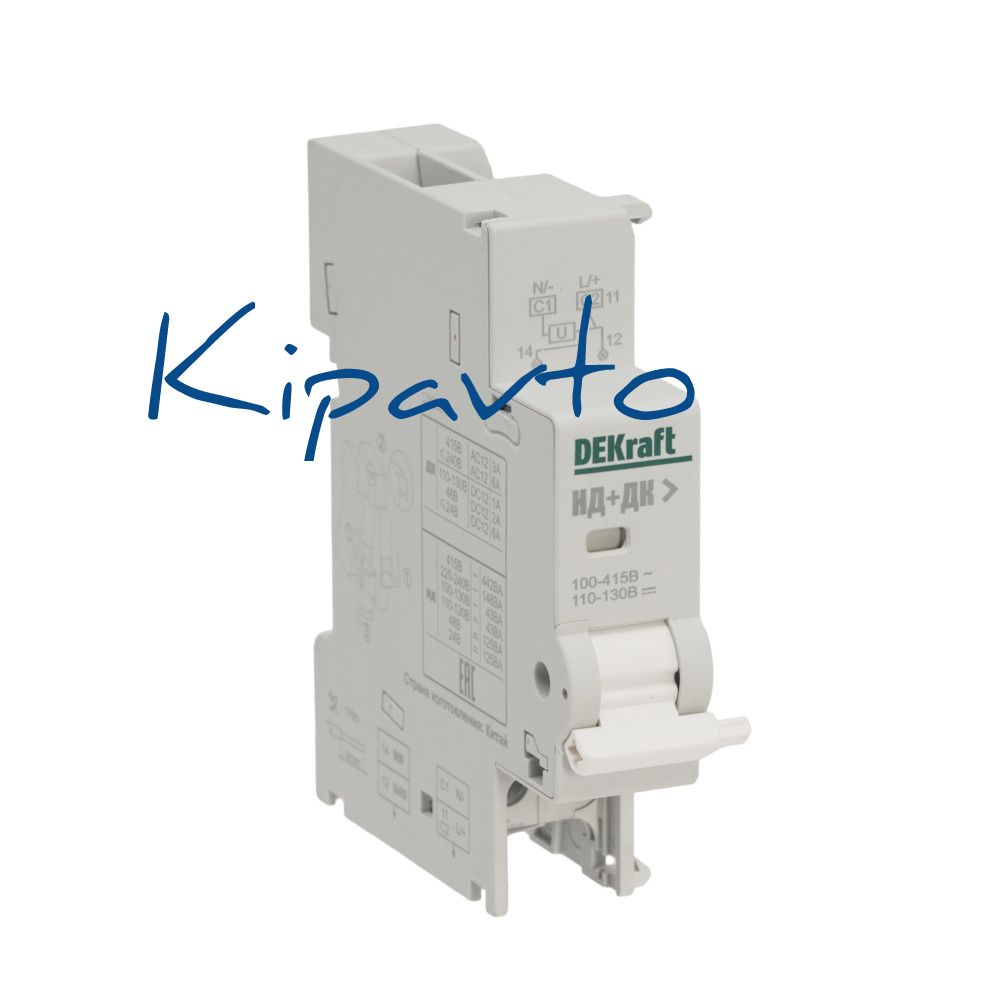 Расцепитель независимый серии НД-105 DEKraft для серий ВА-105, ВА-105 DC - предназначен для дистанционного отключения выключателя, номинальное напряжение 110-415В пер. тока и 110-130В пост. тока, напряжение срабатывания 70-110% Un, ширина 18 мм, присоединение к аппарату слева.