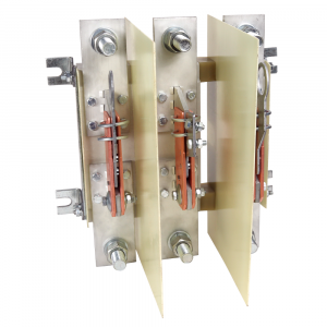 Разъединитель 3 полюсный на номинальный ток 1000 А, где установлена съемная рукоятка, а механическая износостойкость составляет 6300 циклов.