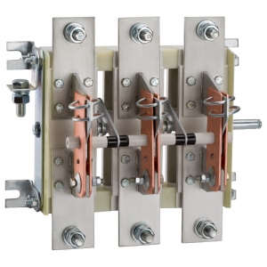 Разъединитель 3 полюсный на номинальный ток 1600 А, где установлена съемная рукоятка, а механическая износостойкость составляет 6300 циклов. Разъединители РЕ19 предназначены для пропускания номинальных токов и нечастых (до трех раз) неавтоматических коммутаций электрических цепей без нагрузки номинальным напряжением до 1000 В переменного тока частоты 50, 60 Гц и номинальным напряжением до 1000 В постоянного тока в устройствах распределения электрической энергии.
