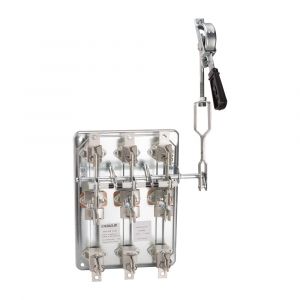 Выключатель-разъединитель 3 полюсный на номинальный ток 1000 А, номинальный условный ток короткого замыкания Iq 50 (кА), где установлена передняя смещенная рукоятка, а максимальное сечение присоединяемых медных шин составляет 480 кв. мм.