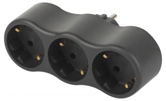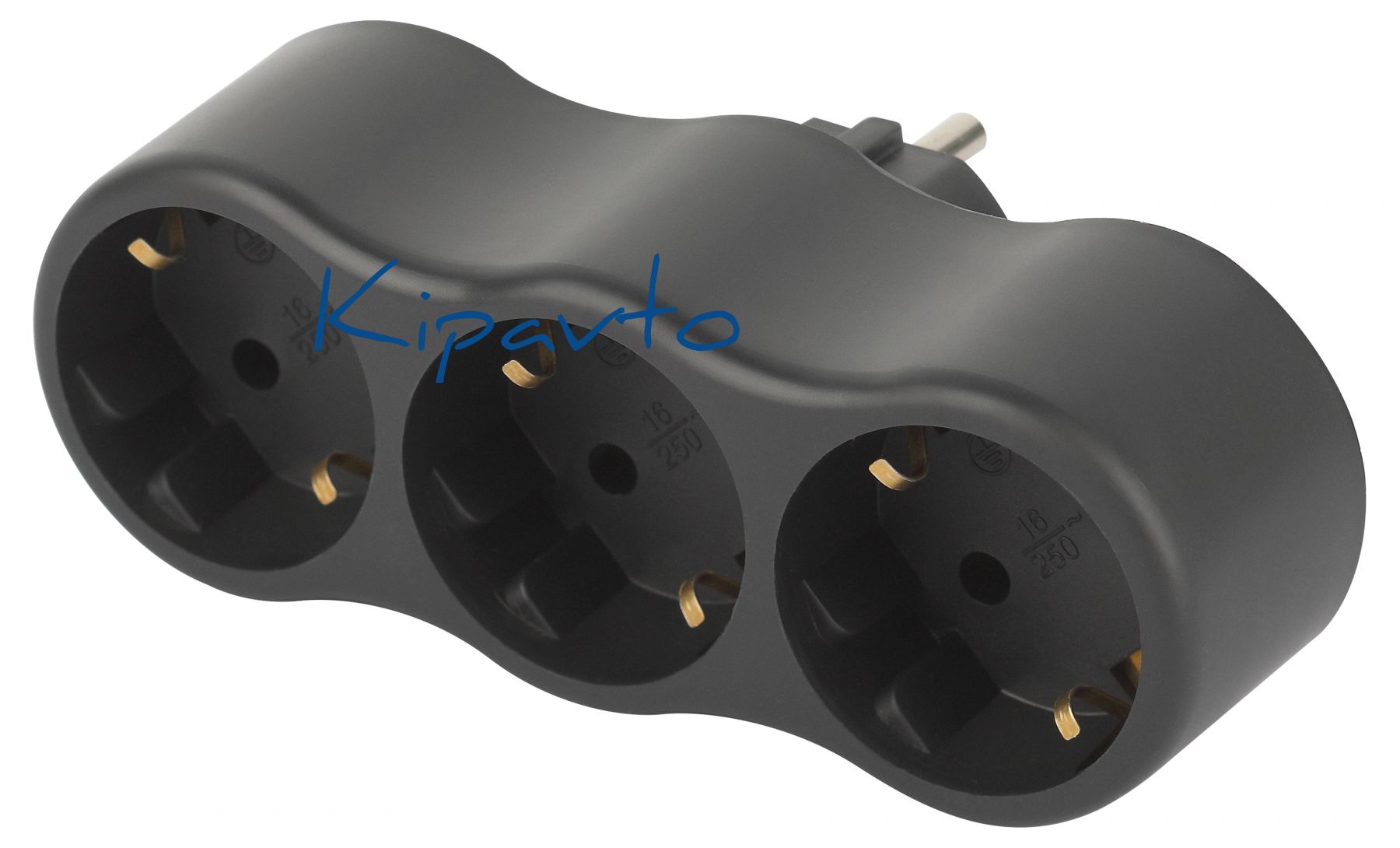 Разветвитель электрический на 3 розетки с заземлением 16А черный SPx-3e-B