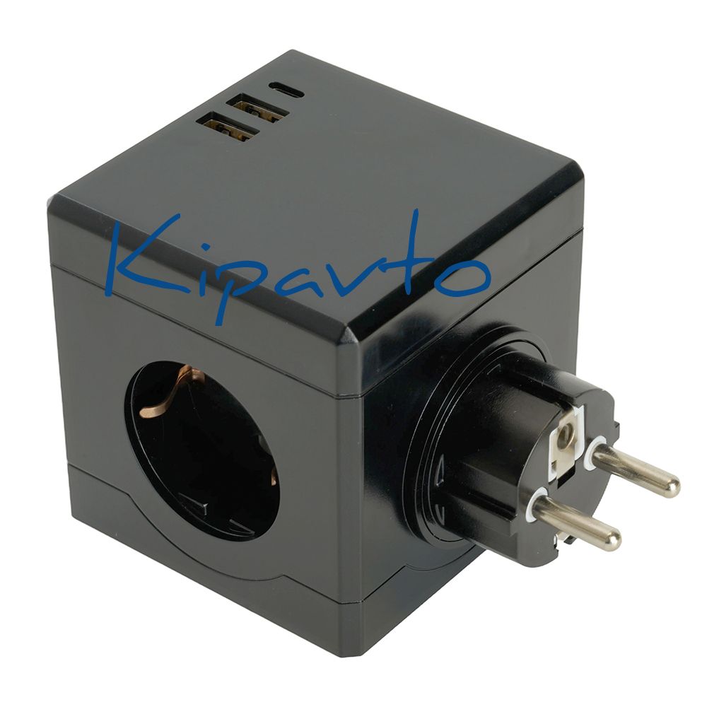Разветвитель сетевой 3-местный 250В 16A 2хUSB A+Type C черный