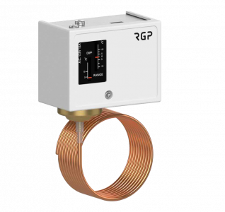 Реле температуры (капиллярные защитные термостаты) применяются для регулирования температуры в системах ОВК, но основной функцией является защита жидкостного калорифера вентиляционной установки от замораживания в зимний период. Термореле с длиной капилляра от 1 до 12 метров производятся в Китае по заказу и под контролем компании RGP. Основная функция температурного реле с капилляром – непрерывно контролировать температуру воздуха после теплообменника и своевременно обнаруживать угрозу замерзания жидкости в его трубках, что позволяет предотвращать разрушение трубок отопительных калориферов от замерзания жидкости и от их разрыва. Реле температуры активирует следующие защитные функции: остановка вентилятора, закрытие заслонки наружного воздуха, открытие клапана теплоносителя калорифера на 100%, запуск циркуляционного насоса теплоносителя, включение звукового или светового сигнала аварии