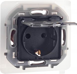 Розетка 1-местная с заземлением с защитными шторками и крышкой 16А IP44 антрацит INSPIRIA