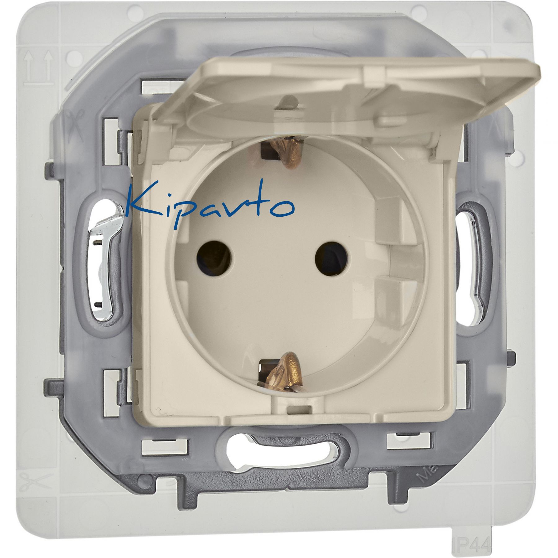 Розетка 1-местная с заземлением с защитными шторками и крышкой 16А IP44 слоновая кость INSPIRIA