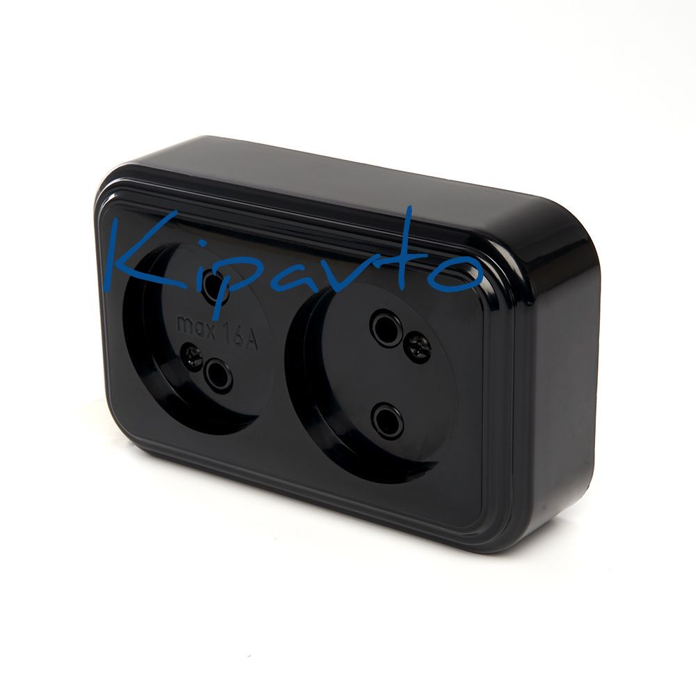 Розетка 2-местная б/з, 250В, 16А, IP20, черный PST16-30-20(RA 16-237-Ч) серия Брест STEKKER