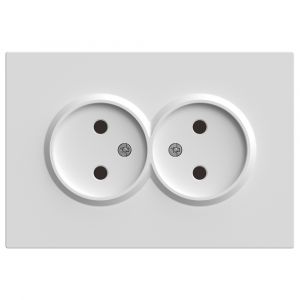 Розетка 2-местная с защитной шторкой б/з, 250В, 16А, серия Эмили, белый фарфор, soft touch