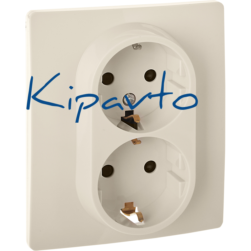 Розетка 2-местная с заземлением с защитными шторками 16А в сборе слоновая кость INSPIRIA