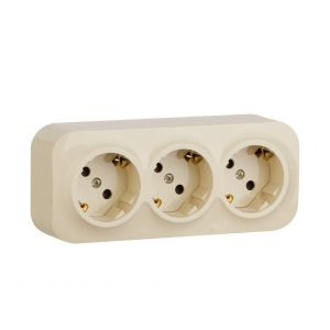 Розетка 3-местная для открытой установки с заземлением с защитными шторками с предварительным подключением 16А слоновая кость QUTEO